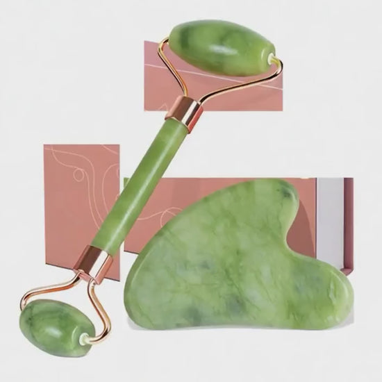 IcyMe Gua Sha & Jade Roller Set – Redness & Puffiness Relief (Green)